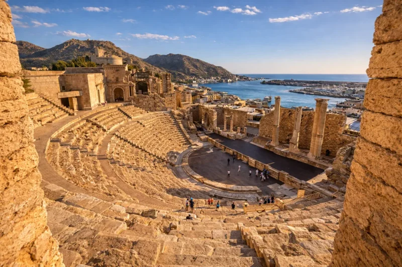 Desde los primeros pasos por el casco histórico, Cartagena revela su esencia milenaria. Su pasado romano y púnico está presente en numerosos vestigios perfectamente conservados. El Teatro Romano, uno de los grandes símbolos de la ciudad, se integra de forma espectacular en el entorno urbano y ofrece una experiencia única que transporta al visitante a la época del Imperio. A pocos minutos, otros espacios como el Barrio del Foro Romano o la Muralla Púnica permiten comprender la importancia estratégica que tuvo Cartagena en la antigüedad.