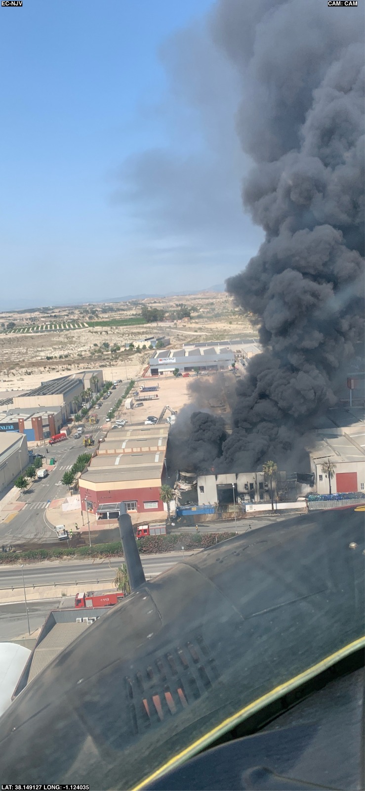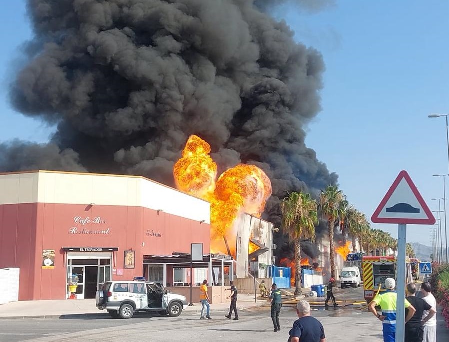 Emergencias recomienda confinarse a los trabajadores del polígono industrial de Fortuna para evitar la nube tóxica del incendio en una nave