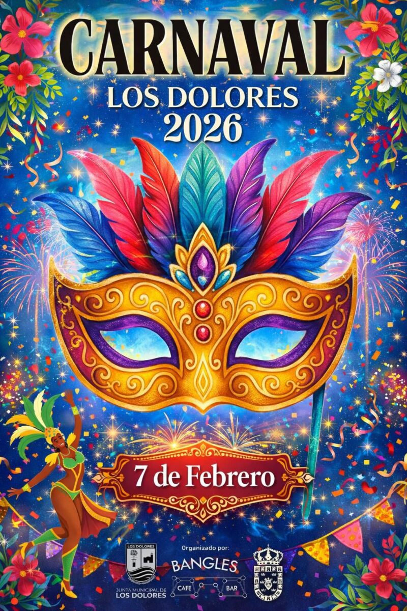 El Carnaval de Los Dolores celebrará su tercera edición el próximo sábado 7 de febrero a las 16:00 h con un gran desfile como acto central, que reunirá a 12 comparsas llegadas desde distintos municipios de la Región de Murcia y de provincias limítrofes, reforzando su carácter participativo y consolidándose como una de las fechas más señaladas en el calendario festivo local.